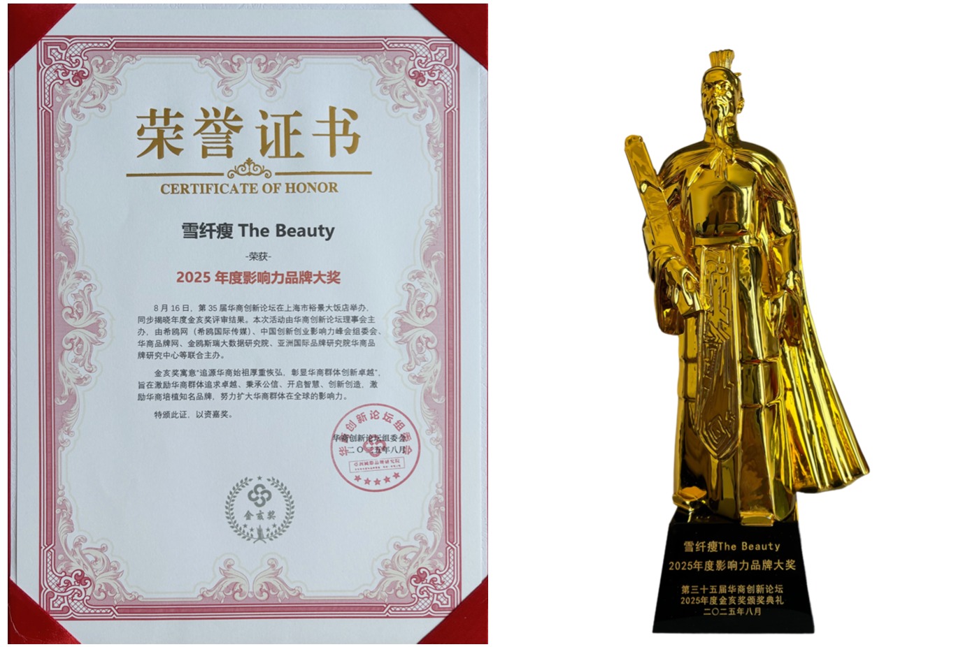 作为深耕美容健康领域的20年品牌雪纤瘦始终坚持创新驱动和专业为本。我们不断在产品力、服务力和体验力上突破,用科学与美学的结合为千万女性提供值得信赖的美丽解决方案。这份荣誉既是行业的认可,更是用户的信赖。未来,我们将继续以更高标准引领行业,以专业与创新驱动中国美业走向世界舞台。雪纤瘦,以荣誉见担当,以创新致未来!